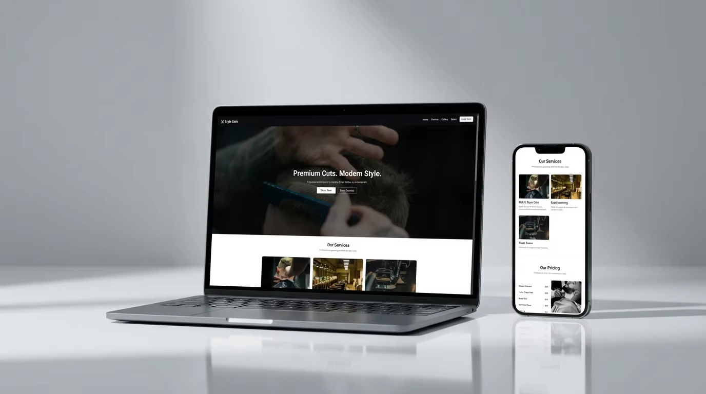 Modern barbershop client website with sleek UI, built using React and Bootstrap